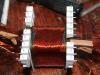 Еще один транс E70 по той же технологии с чередованием, влазит все легко и с зазорами на стандартном каркасе, который меньше чем надо на 2-3 мм во все стороны, и изоляцией импортной матерчатой изолентой. Вторичку можно было легко 16 мм^2 сделать, домотав еще один слой, но не нужно. Это для 40-42 кГц, кТр=2,66. Никакие колбасы литцев не дадут такого размещения и индуктивности рассеяния, а о вихревых можно и не вспоминать.