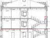 Приветствую вас! Необходимо определится с высотой светильника в лестничной клетке первого этажа (я его закрасил красным на плане) светильник обозначен Sv-7 с высотой 2,3. Я отмерил высоту 2,3 метра от отметки 1800 мм, которая так же указана на плане ( и на разрезе) т.е. от лестничной площадки, и на этой высоте сказал его установить. Но электромонтажники считают что светильник не может там находится (типа под окном во первых а во вторых на уровне пола второго этажа) и предлогают установить его на потолке второго этажа. На мой вопрос, почему же тогда он на плане первого этажа а не второго изображен, отвечают что, дескать, там где лестнчные клетки привязки к этажам на планах по другому делаются. На мой взгляд это ерунда так как ставить светильник на потолке второого этажа, когда он указан на первом и тем более над окном, это вздор. Но сомнение посеяли - просьба развеять) За раннее спасибо!